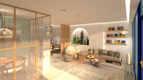 L’objectif était de concevoir un espace convivial où l'on se sent immédiatement transporté dès qu'on franchit la porte. Des espaces ont été aménagés pour offrir une certaine intimité lors des échanges avec les clients, tout en favorisant la communication entre les membres de l'équipe.